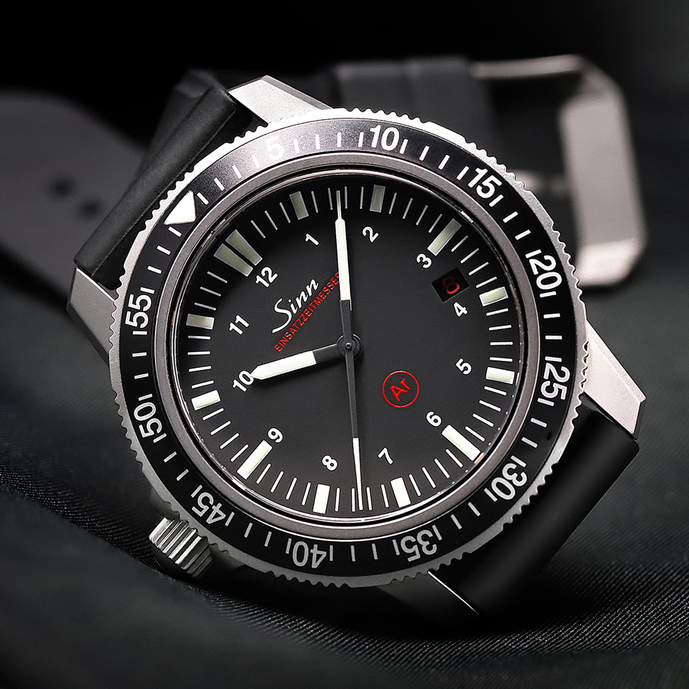 EZM3はSinn(ジン)の中では“ミッションタイマー”に位置づけられ、現行のEZMシリーズでは一番長く継続しているモデルです。「EZM」という言葉は、出撃用計測機器を意味するドイツ語「Einsatz Zeit Messer(アインザッツ ツァイト メッサー)」の頭文字です。ちなみに、EZMの後ろにつく数字は開発がスタートした順番なので、必ずしも発売した順番とは限りません。EZM3は3番目に開発がスタートし、EZM1、EZM2、EZM4に次いで2001年に4番目に発表、そして発売されたミッションタイマーです(EZM1、EZM2、EZM4はすでに生産が終了しています)。
