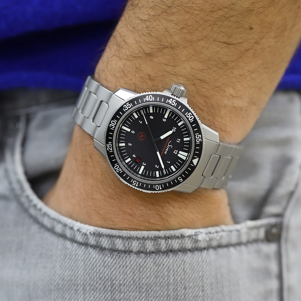 レギュラーモデルとして新たに加わったのはEZM3と同様のミッションタイマースタイルとスペックを持ち、ステンレススチールにブラック・ハード・コーティングを施した「EZM 3 S」。より精悍でタフな印象のダイバーズウォッチです。