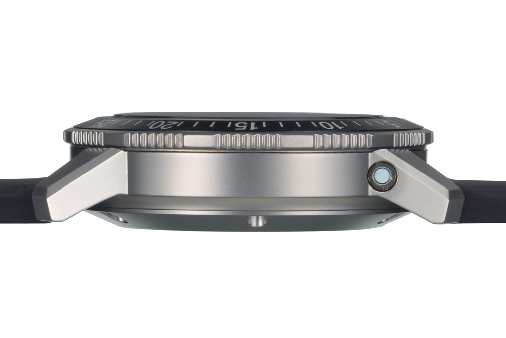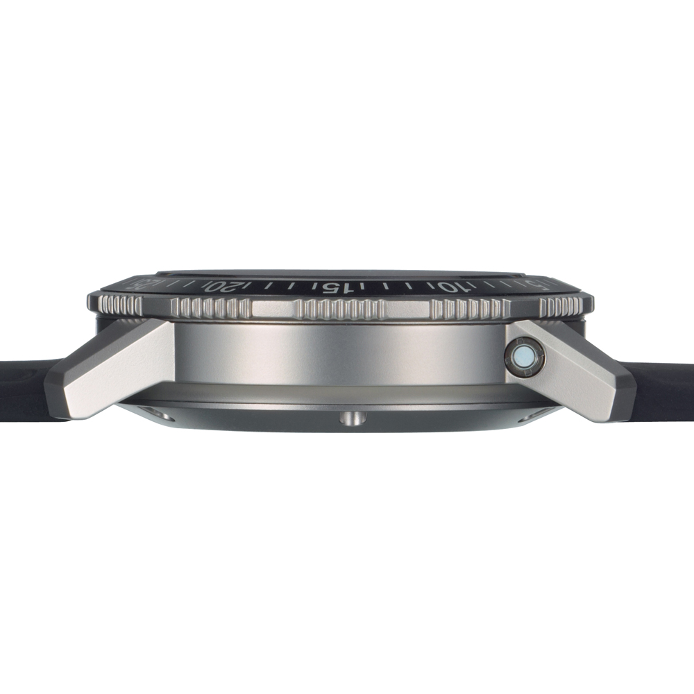 EZM3は、ミッションタイマーの基本設計である“逆位置リューズ”のスタイルなので、リューズが腕に当たることなく、快適な装着感が得られます。プロフェッショナルたちのミッションでは、使用機器にリューズが干渉しないための配慮です。