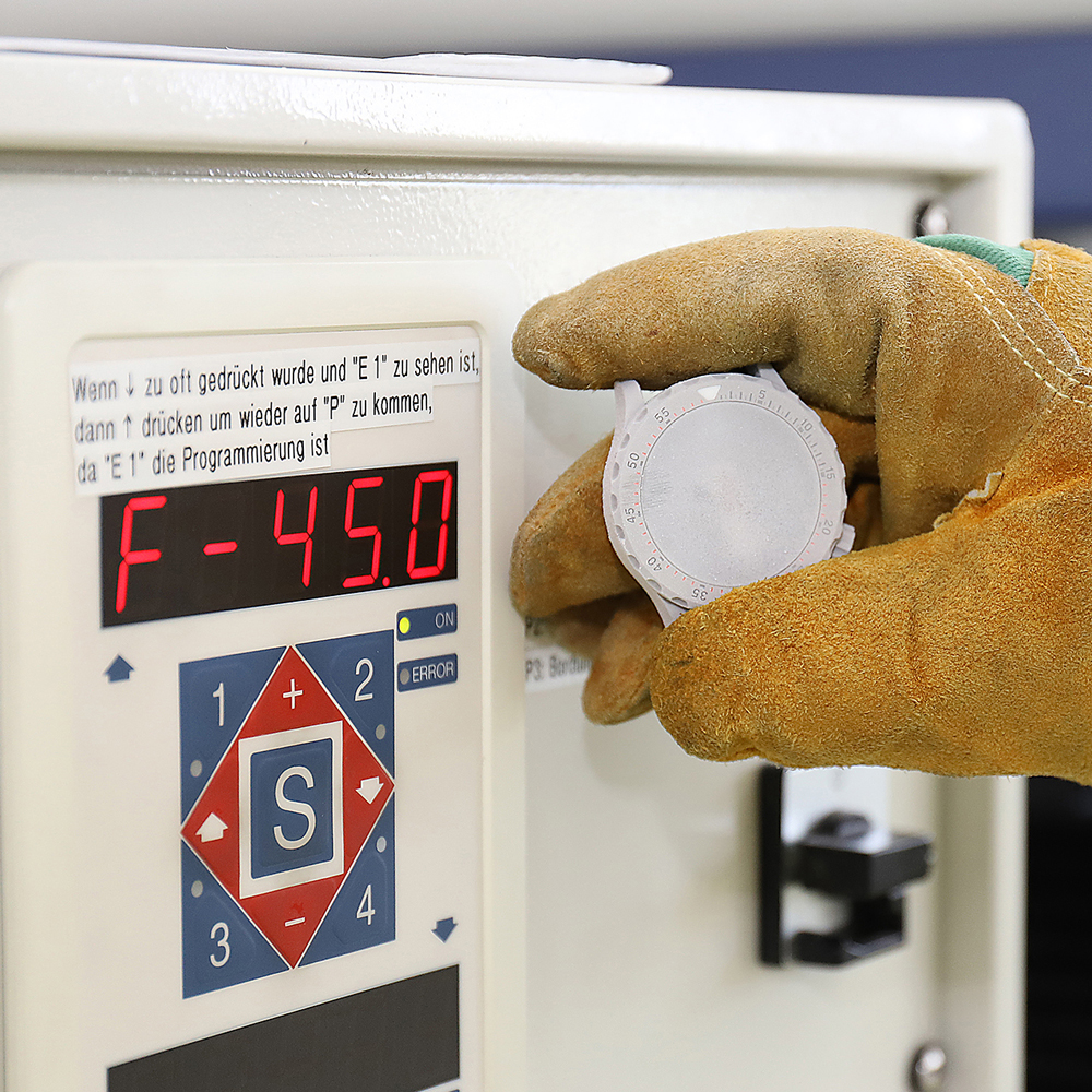 過酷な環境での使用を想定したミッションタイマーでは、時計のムーブメントオイルにSinn(ジン)が開発した特殊オイル66-228を使用しています。低温でも固まらず、高温でも蒸発しないオイルにより、時計は-45℃から+80℃の温度での精度が保証されます。