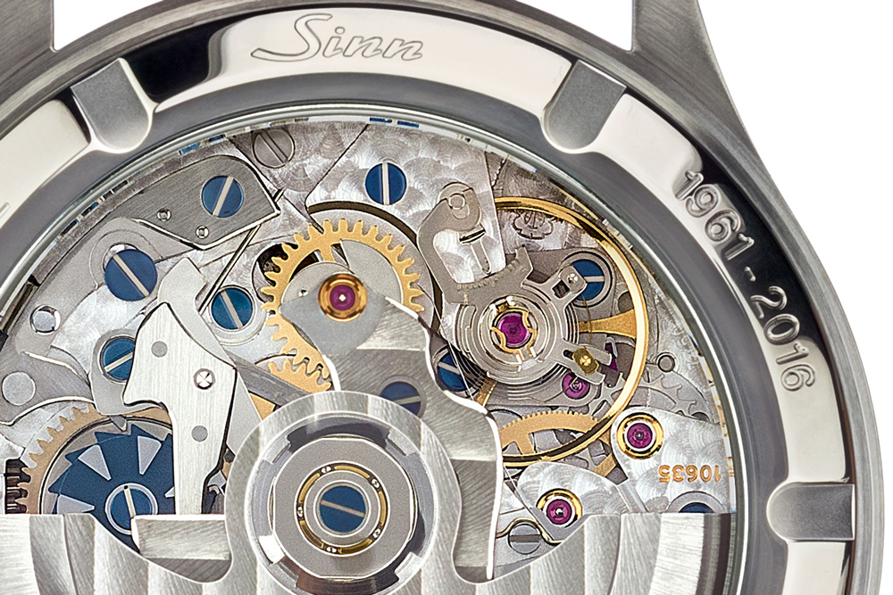 2016年には55周年の記念モデルとして、910.JUBというスプリットセコンドを搭載した300本限定のクロノグラフが開発されました。クロノグラフの制御方式にコラムホイールを採用した特別なコンプリケーションモデルです。このモデルでは「1961-2016」の文字はケースバックに刻まれています。
